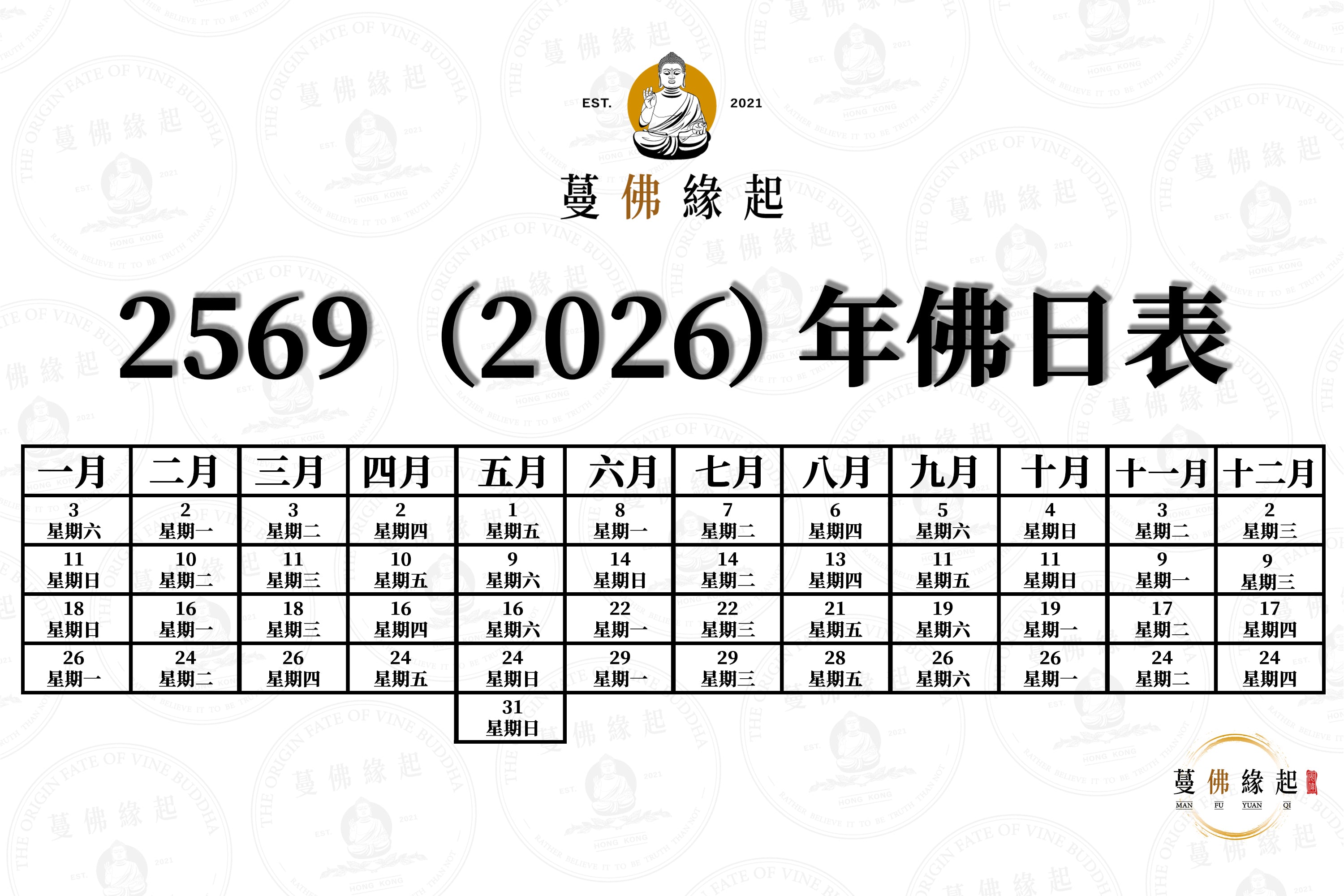 泰國佛日表