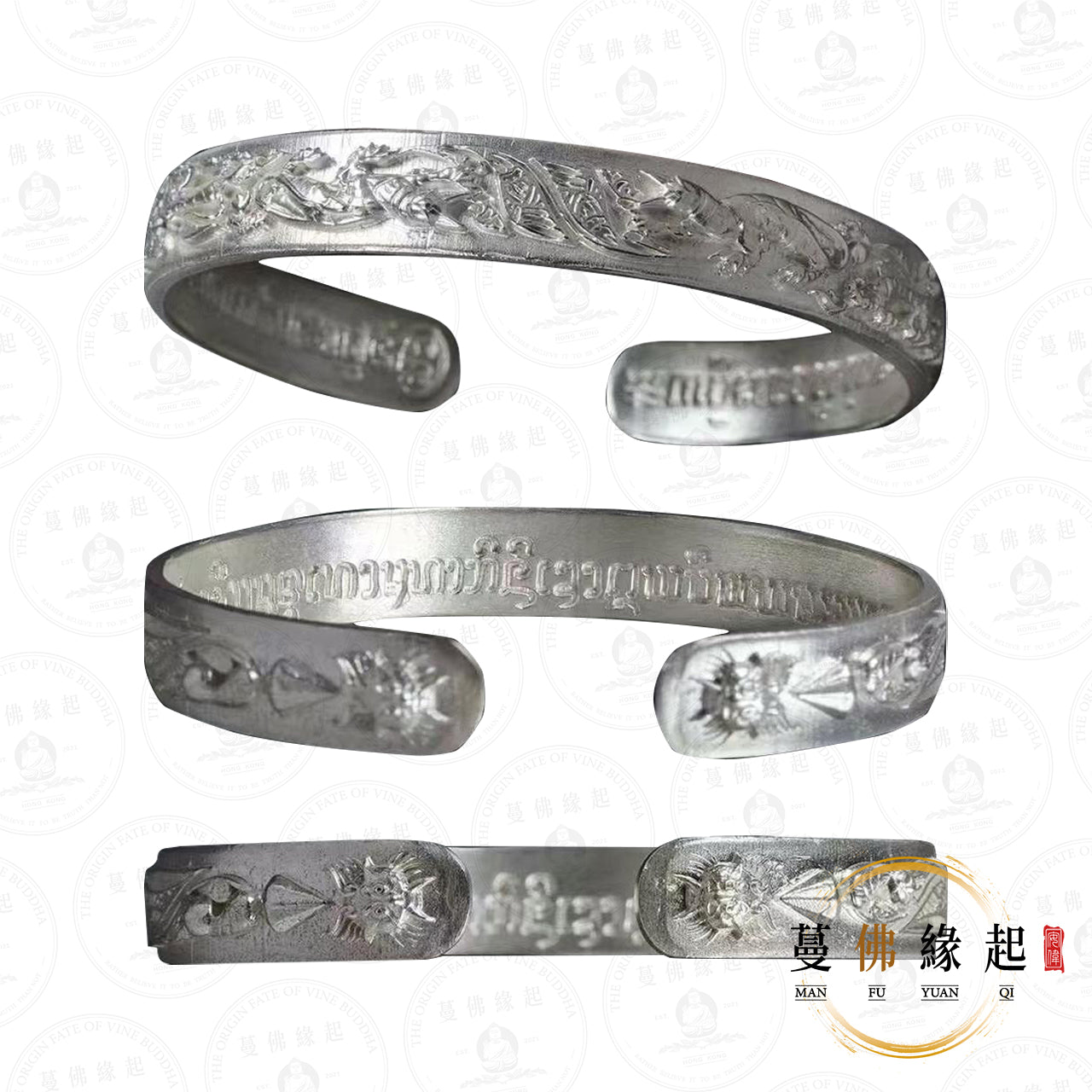 手環聖物分為純銀材質67尊,白銅合金367尊。在佛歷2567年七月守夏季開始前,加入大量殊勝老金屬和符片等熔鑄製作,(注意是熔鑄工藝,手鐲的模具會沒有那麼清晰但分量重量會很足) 。
