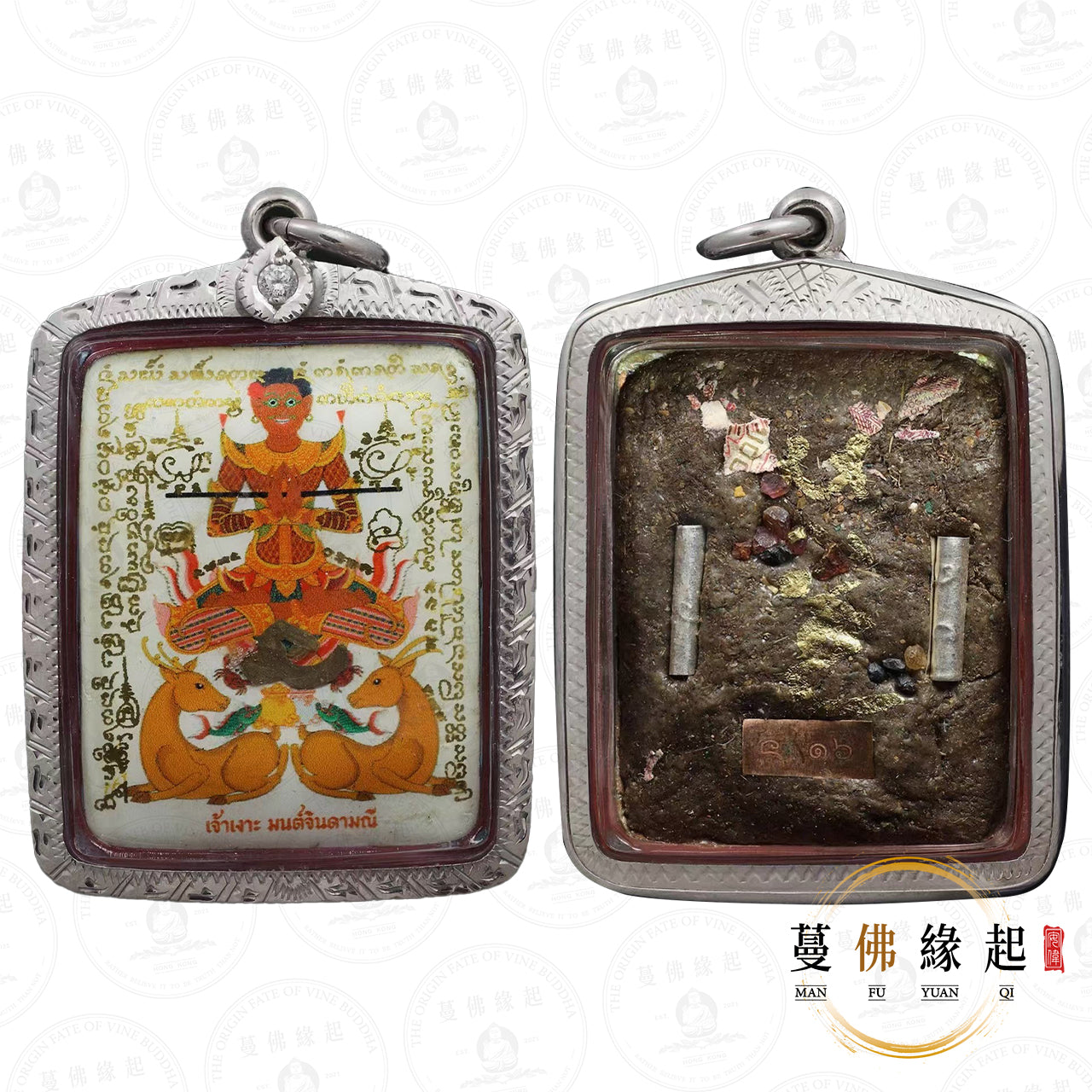 師父說:想成為一個富豪,成功人士這幾點一樣也不能少,財運(關於錢財的運氣)還有富豪的福報(說白了就是發財命)人脈人緣資源,還有就是機會,這四點師父為大家考慮到了,於是做了這一期牌,分別是泰北嫡傳金達麻尼周惡(想錢來錢,想啥來啥的經文)、五富豪法門(五位富豪的福報融合為一體泰語叫เศรษฐีทั้ง 5)、回頭鹿,十鹿九回頭超級人緣異性緣、回頭羊(羊把一片地方的草吃完之後,會等那片地方長新草之後回頭再去吃(寓意就是曾今失去的東西會再次得回來)四個法門融合一起加持一整年,由於周惡為大天神於是周惡作為主要法相,實際上四種法門每一個都是主角,接下來我挨個介紹: