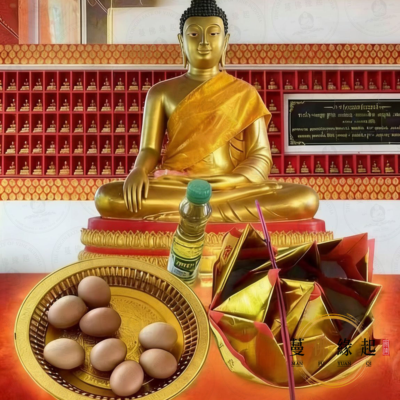 金色貴人招財桶➕紅色開運香➕索通貴人佛最愛的8枚熟雞蛋➕香油➕人緣鳥經文符紙