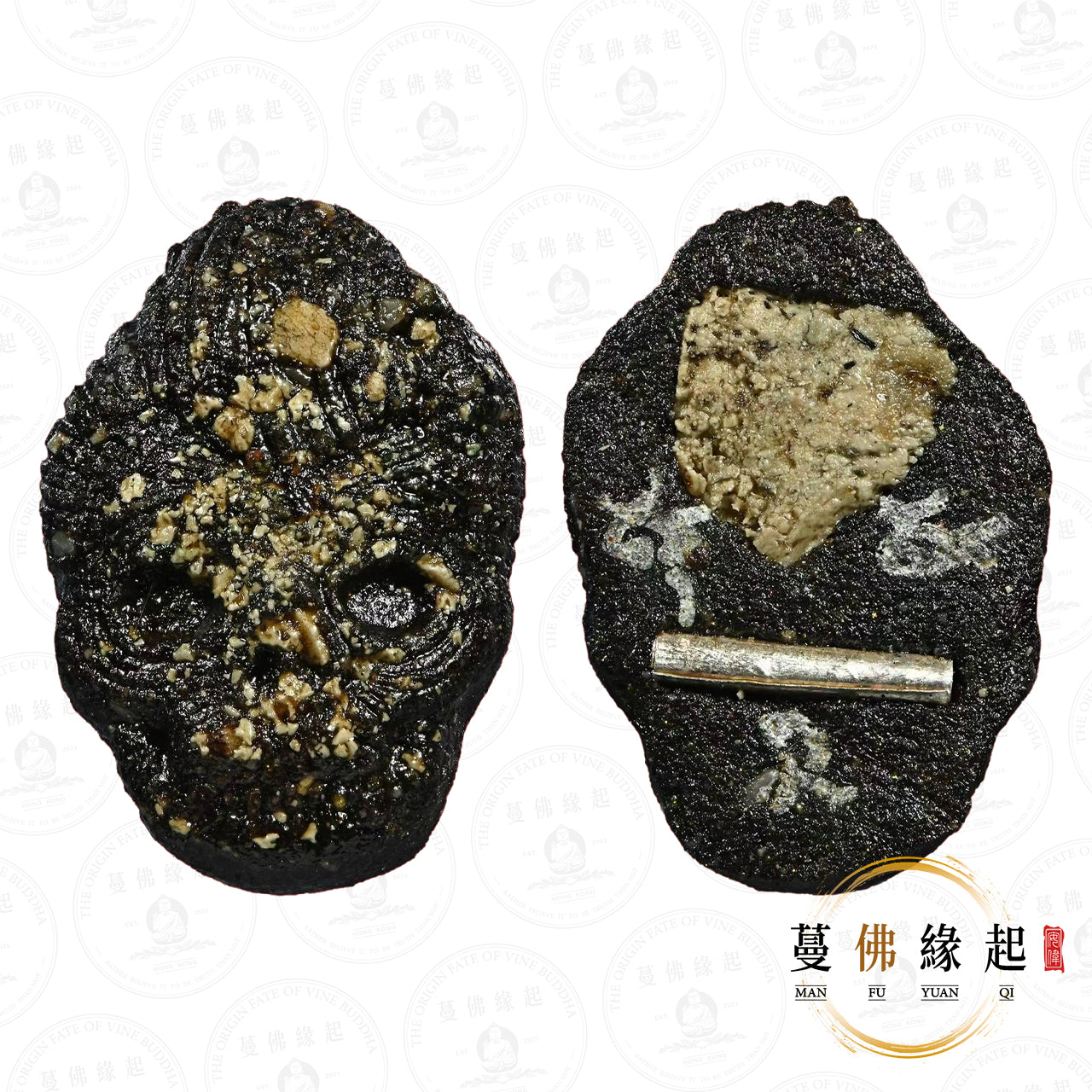 背後封入「匹沙娃」部分顱骨殘片、108灣料、c油、c膏混合。銀符,作為靈力主載體,總數極少,皆由阿贊虎親黑派正念結合高棉情感掌控術自開壇加持。