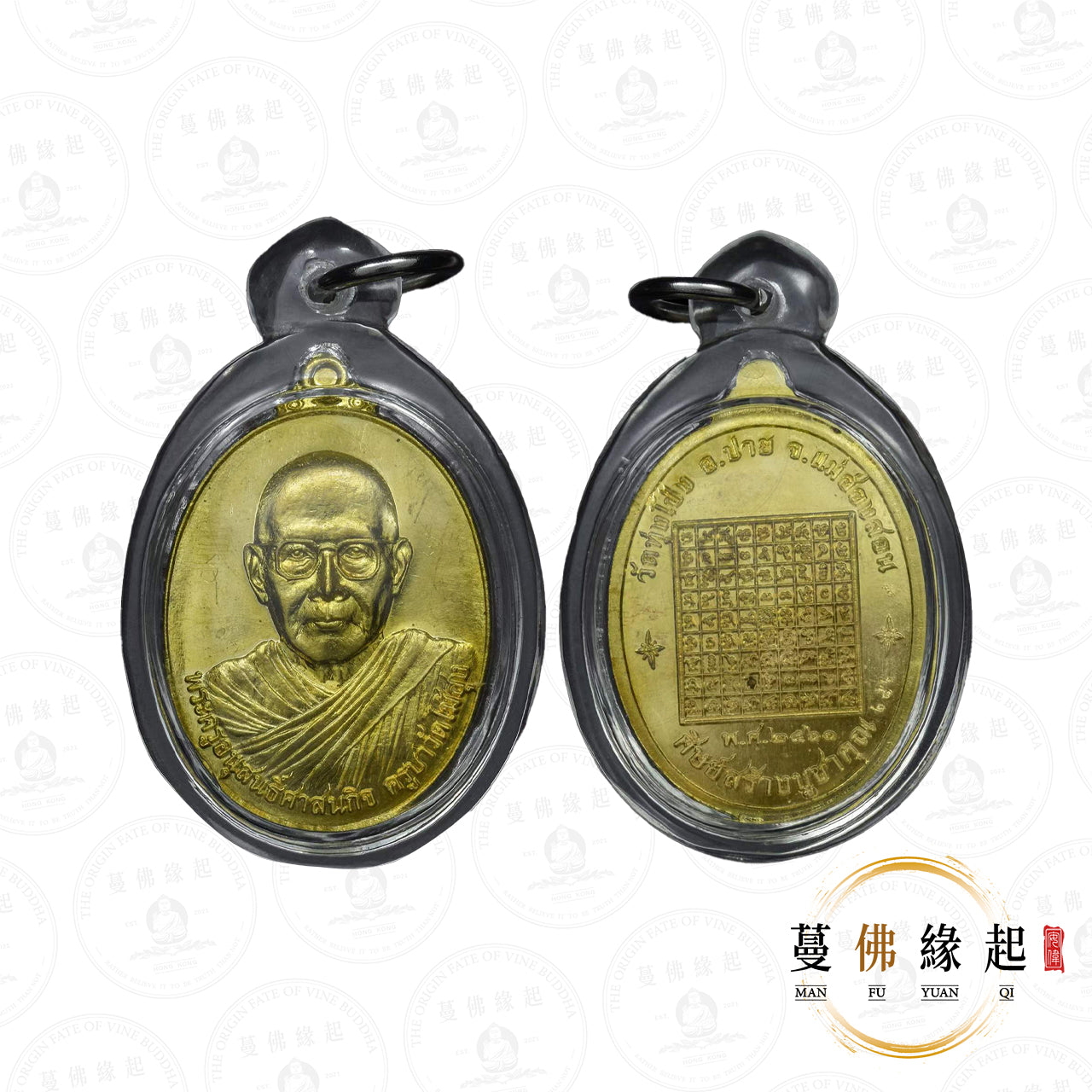 本期自身像佛牌分為兩款,分別為:年輕模及年長模。每枚皆錒刻編號。其中銀質塗紅、鉛質及尖金銅材質的年邁款及年輕款的前1-21號被組合成21套理事會套盒,每盒6枚。
